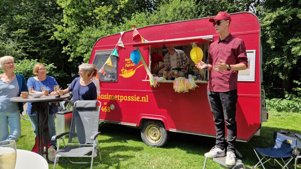 7-10-2023 Vandaag was het dan eindelijk zover, mijn eerste echte opdracht voor het bedrijf, de foodtruck was dit keer alleen mee ter decoratie maar zal in het vervolg natuurlijk bij zo een opdracht ingezet worden als de foodtruck helemaal af is. Iedereen was zeer tevreden over de kwaliteit van het eten en ze vonden het leuk om te zien dat een deel van de maaltijd op de dag zelf werd klaargemaakt. Voor nu was het een leuke eerste ervaring en nu kan ik mij weer gaan richten op het verder werken aan de foodtruck.